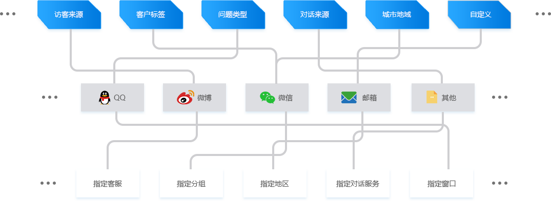 根據(jù)企業(yè)不同地區(qū)、不同業(yè)務(wù)、不同服務(wù)類數(shù)據(jù)進(jìn)行智能分流,將精準(zhǔn)的對(duì)應(yīng)到客服或分組。